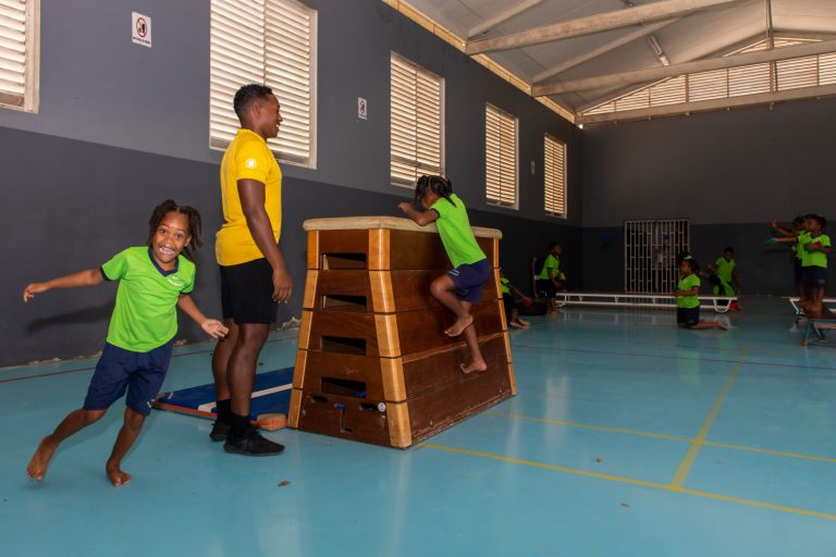 De leerlingen van de groepen 1 t/m 8 gaan twee keer per week naar Jong Bonaire voor de gymles. Meneer Tom Heijl verzorgt de gymlessen.