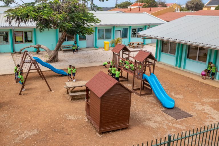 De in- en uitgang van de school is naast Kresh Bon Kuido.